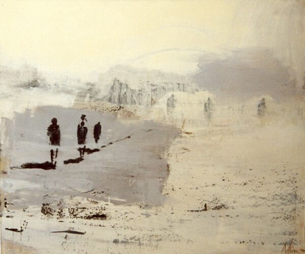 "Reisende", 2005, Asphalt und Acryl auf Leinwand 70x80 cm