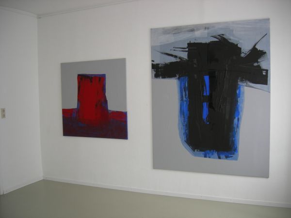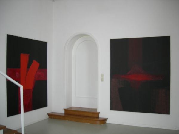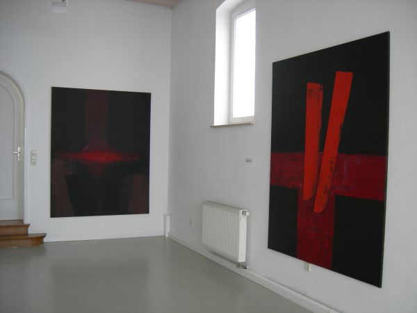 Hans Rentschler setzt die Farbe spontan und kraftvoll. Sein Pinselduktus ist wuchtig und schreckt nicht zurück vor dem dynamischen Einsatz von Schwarz, vor der Sinnenfreudigkeit von leuchtendem Rot. Er verknüpft die Horizontale mit der Vertikalen und kommt dabei zu recht unterschiedlichen Lösungen. Überschneidungen sind gewollt. Sie sind wie die Diagonalen Träger von Energie. |