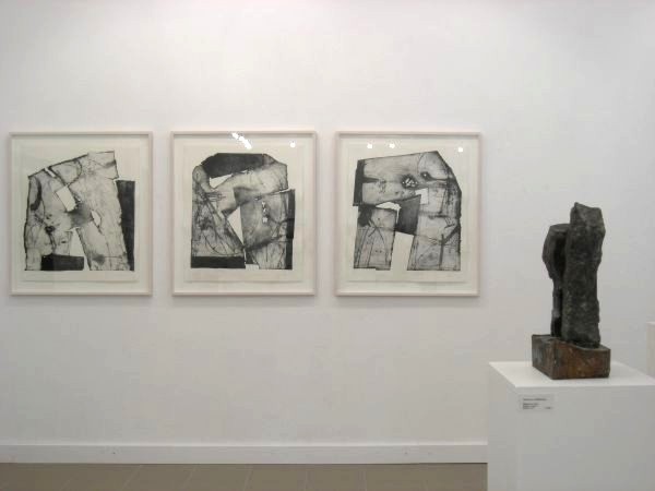 Harald M. Björnsgard, "Köpfe II,I,III", 2005, Stahlblechdrucke, 91x80 cm, gerahmt "Begegnen", 2003, Bronze, 42x31x14 cm