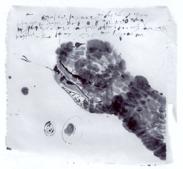 Tatiana Skalko-Karlovska, „Schlangenkopf“, 2002, Chinapapier, Tusche, 69x75 cm