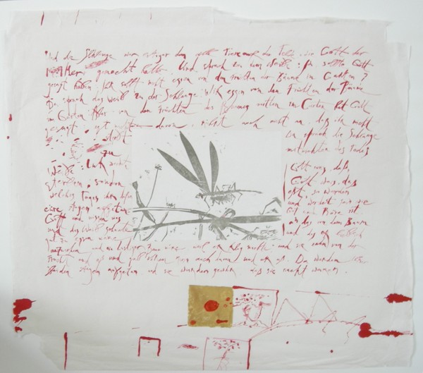 Tatiana Skalko-Karlovska, „Vertreibung aus dem Paradies“, 2003, Chinapapier, Tusche, 68x72 cm
