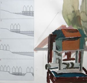Grazioella Drössler, Modelle zur Pfahlbautheorie, 2006, Inkjet, Tempera auf Papier, 30x31 cm |