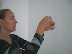 Danuta Karsten beim Aufbau ihres Sprachraumes |