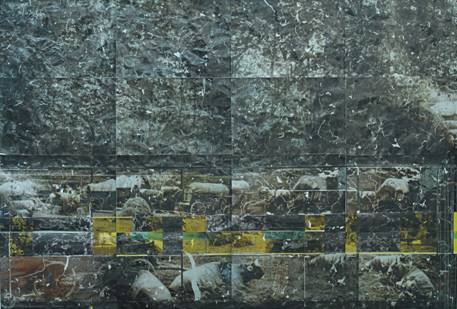 aus 16 C-Prints, gebügelt, zerkratzt, beklebt,