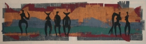 o.T., 2002, Holzdruck auf Stoff, 60x200