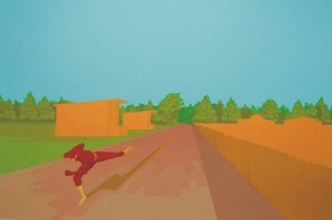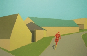 Er bringt die Farbe. Der Läufer, der durch die Welt läuft, rennt, sie flieht, der den Kontakt mit ihr meidet, nur einen flüchtigen Schatten wirft. Hier rennt David, nicht Lola!