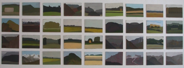 umsonst wählt der Künstler für eine Gruppe kleiner, querformatiger