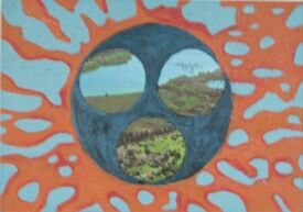 „Kraftfelder, 2003, Öl auf Postkarten, 10,5x14,8 cm |