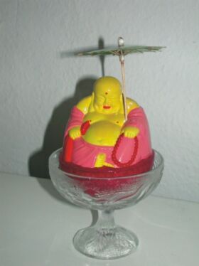 „Sommersaison“ (Eisbecher), 2000/2003 Glas. Acrylfarbe, Holz, Hartformgips, Lack, Polyester |